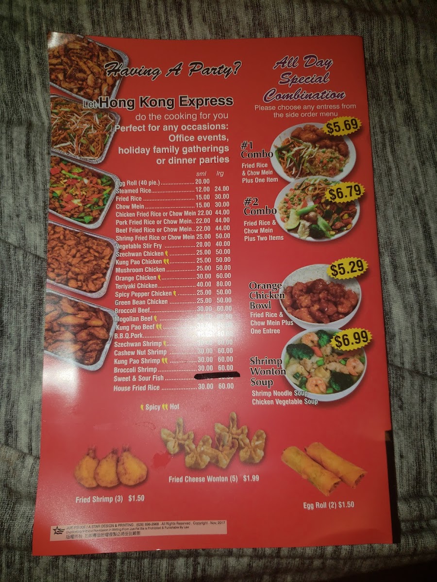 Hong Kong Express offers a straightforward and comforting menu typical of a casual Chinese takeout spot. The dishes focus on familiar favorites like fried rice and chow mein, with options ranging from vegetarian vegetable rice to hearty combinations featuring shrimp, chicken, beef, and pork. These meals are satisfying choices for lunch breaks, quick dinners, or anytime you crave something warm and filling without fuss.